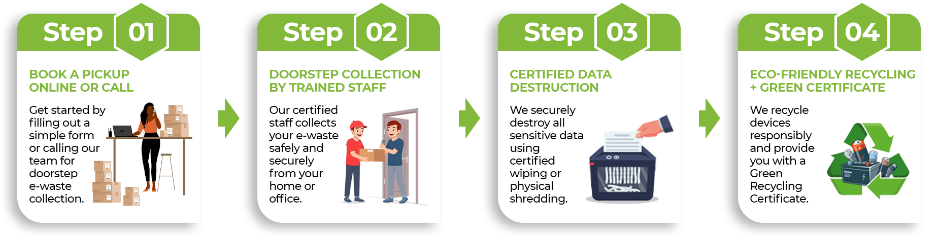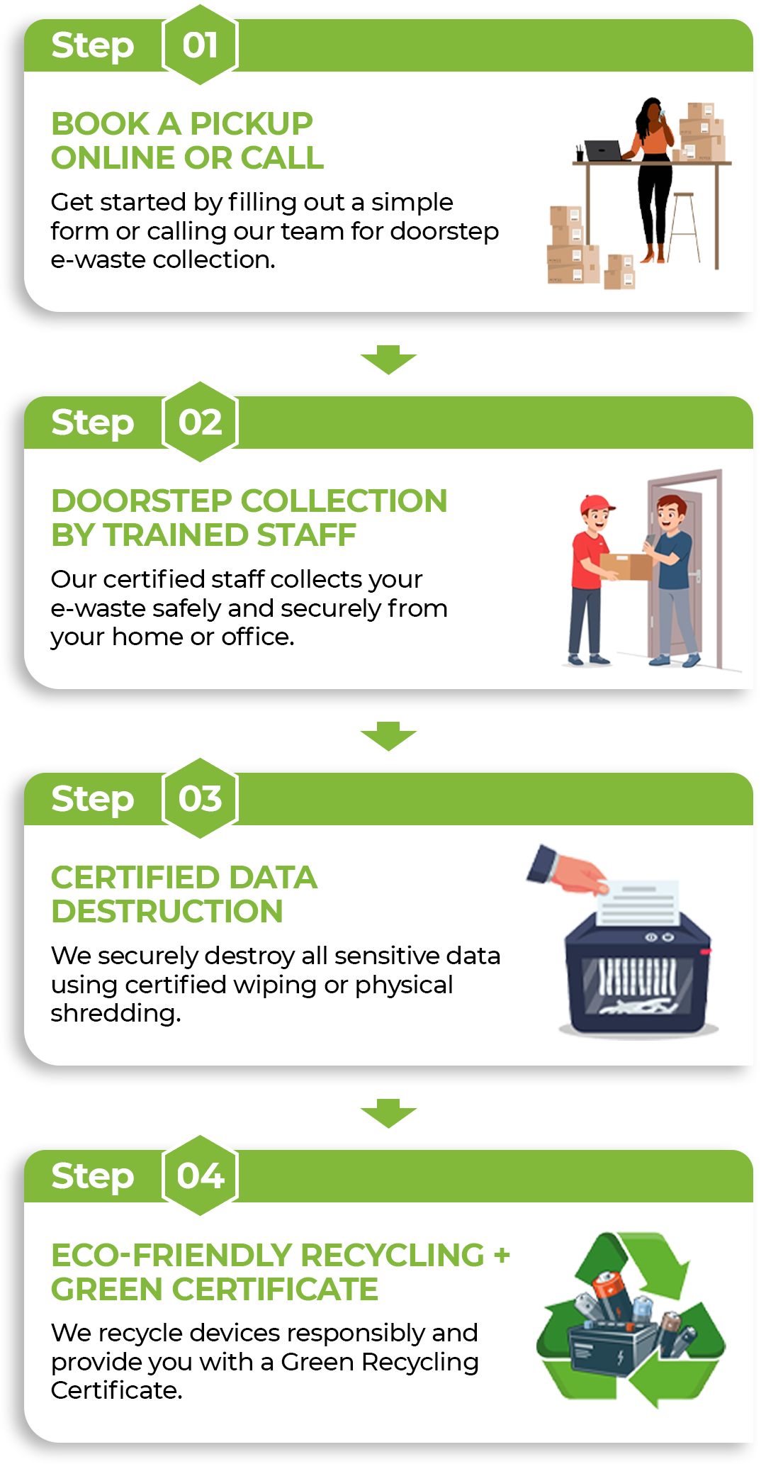 ISO certified, CPCB approved, secure data handling, and India-wide pickup network.